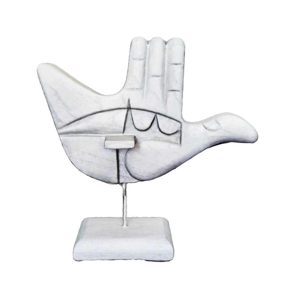The "Open Hand II" is a scaled model of the Open Hand monument in Chandigarh. It comes with a steel shaft connected to a wooden base. Available in four different vintage finishes.